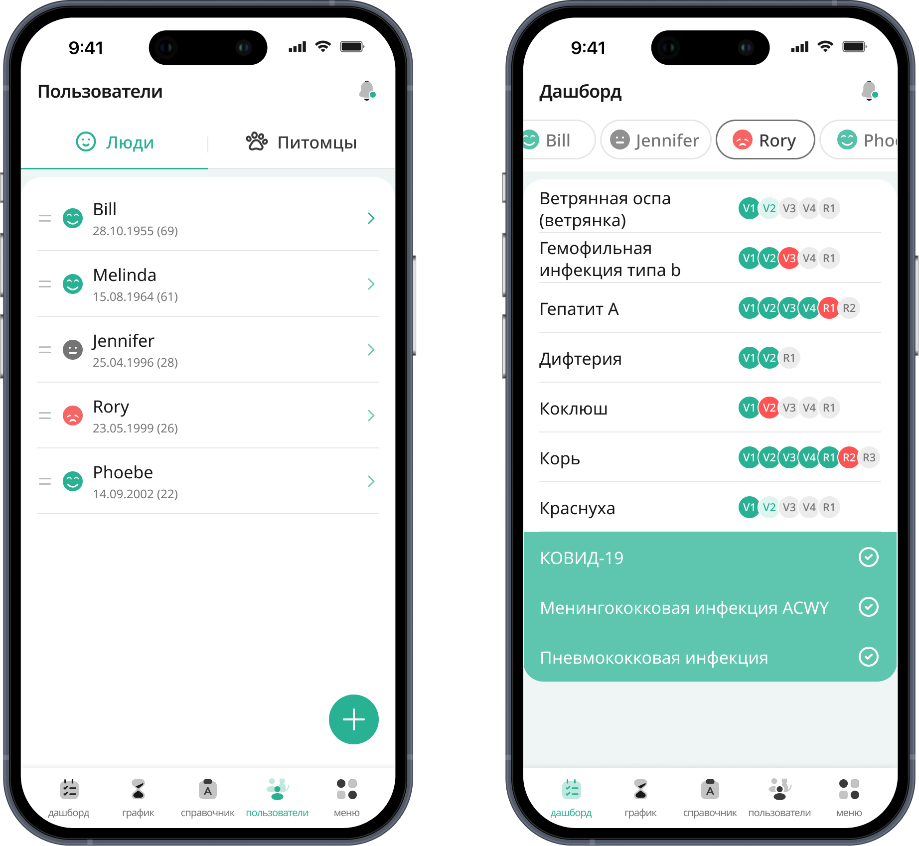 Бесплатное приложение с цифровым графиком вакцинации на всю жизнь.